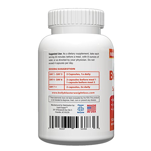 -. Binding : Health and Beauty -. Brand : Belly Blaster -. EAN : 0091037537836 -. Feature : Belly Blaster contains an Advanced Proprietary Formula using Clinically Studied Ingredients. With 120 Capsules per bottle, Belly Blaster will provide a full 30 days of servings at 2 serving per day. / Belly Blaster delivers the highest guaranteed potency and quality extract available to the general public. Advanced Clinical formula delivers potent results. / Appetite suppressing, highly concentrated extract. / Made exclusively for those who prefer highly-concentrated, clinically studied ingredients! Full 30-Day Supply, 60 Capsules, Zero Allergens, manufactured in a GMP certified facility. / Made with pride in the USA. -. IsAdultProduct : 0 -. Label : Belly Blaster -. LegalDisclaimer : Guaranteed results -. Manufacturer : Belly Blaster -. Model : 091037537836 -. MPN : BB123 -. PackageQuantity : 1 -. PartNumber : BB123 -. ProductGroup : Health and Beauty -. ProductTypeName : HEALTH_PERSONAL_CARE -. Publisher : Belly Blaster -. Studio : Belly Blaster -. Title : Belly Blaster Super Thermogenic Weight Loss Pill, 120 Capsules -. UPC : 091037537836