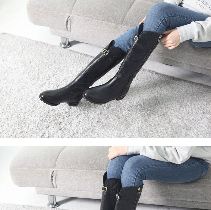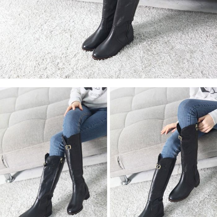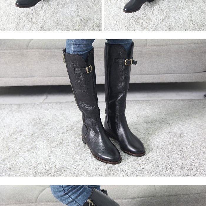 商品名:ロングブーツ レディース ローヒール 本革 裏起毛 2017 秋冬 ファッション 靴 婦人靴