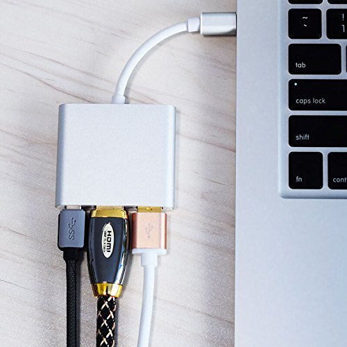 3-In-1. The USB 3.1 Type-C to HDMI+USB3.0+Type-C/F Charging Adapter helps you connect computer with type C port to a display monitor/projector/HDTV with HDMI port and other devices(mouse, USB flash disk,keyboard, etc) with USB3.0 port.