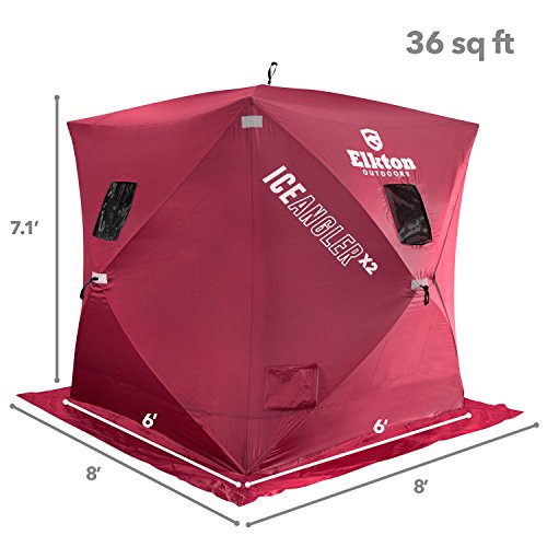 • SPACIOUS: Ice Fishing Shelter Fits 3 people comfortably. 36 Square Feet. 6 FT Long x 6 FT Wide x 7.1 FT Tall. Mesh Pockets inside for gear storage.