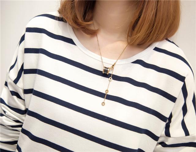 定番のボーダーロングシャツ。シンプルで使いやすいトップスだから一枚は持っていたい!