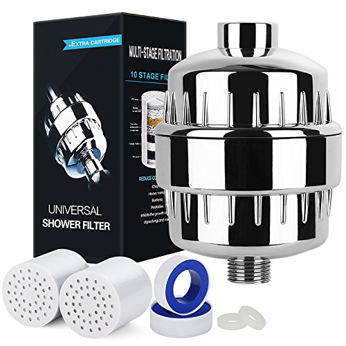 10-Stage Shower Water Filter with 2 Cartridges - For Any Shower Head and Handheld Shower - baby shower filter - High Output Universal Shower System - Replaceable Multi-Stage Filter Cartridge