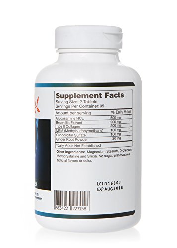 Glucosamine HCl 500mg, Boswellia Extract, Type II Collagen, MSM 100mg