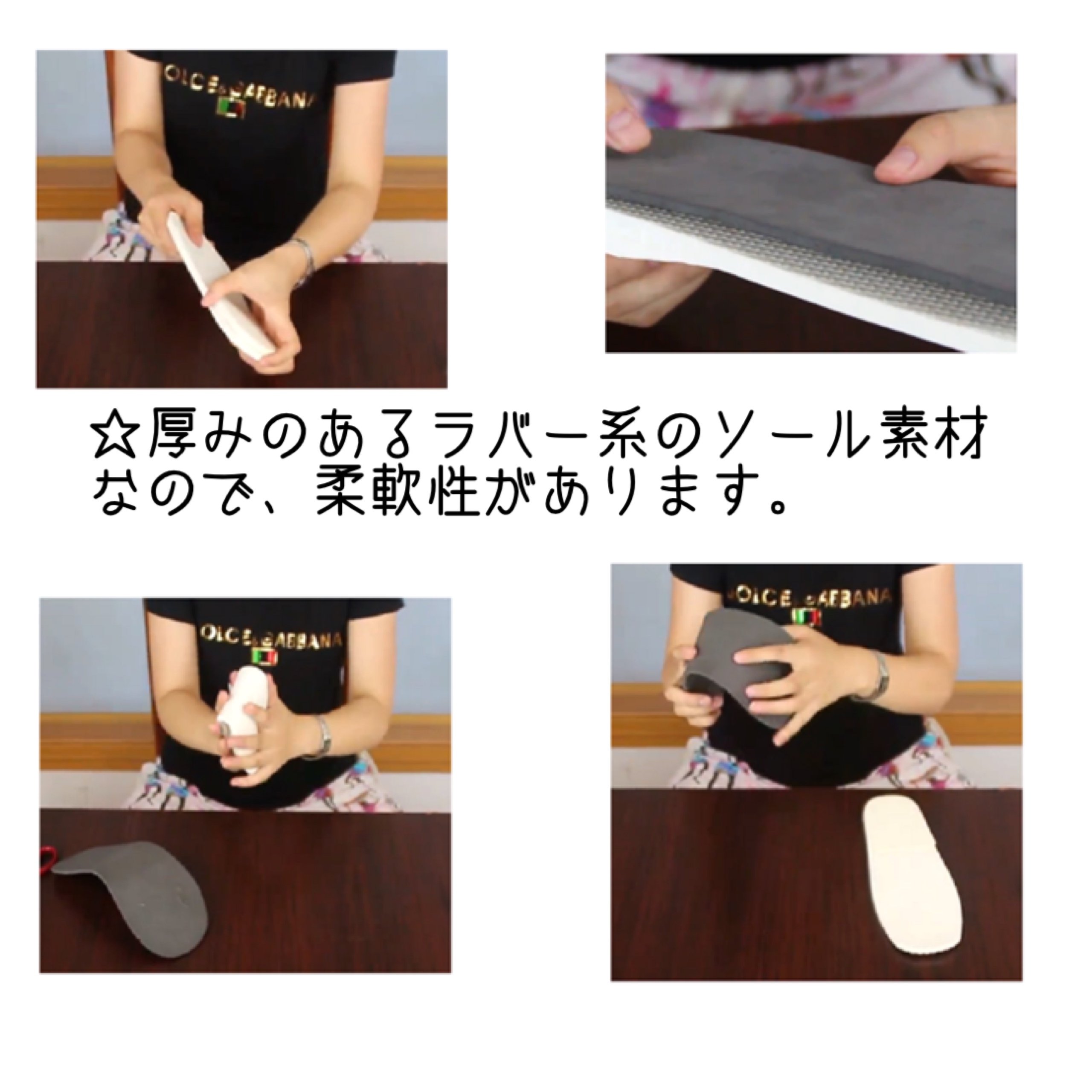Rubber type sole with supple thickness.