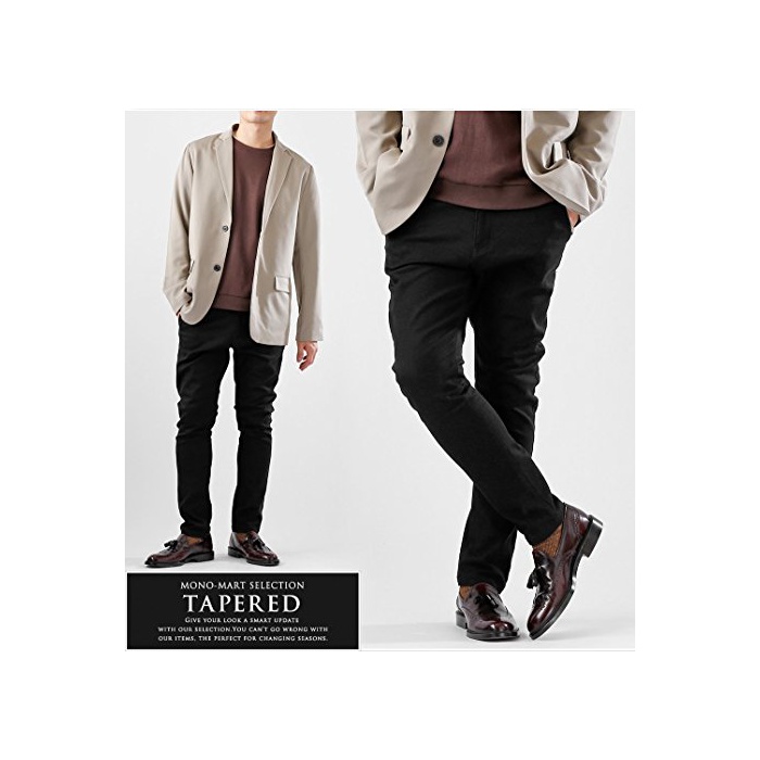 (모노마트) MONO-MART 치노 빵 스트레치 슬림 스키니 컬러 팬츠 다리기 맨즈 【테이퍼 드】블랙 M사이즈