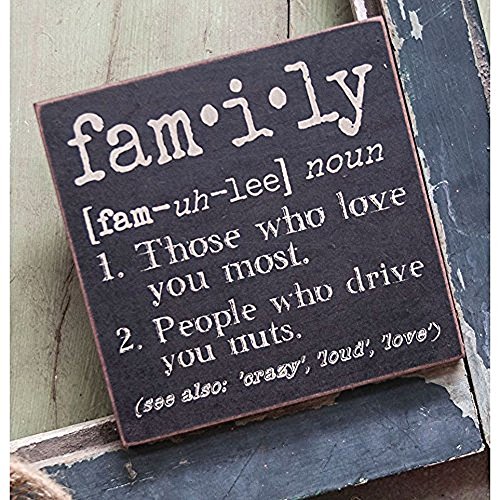 - Wood sign has vintage look and reads -- family [fam-uh-lee] noun 1. Those who love you most. 2. People who drive you nuts. (see also: 'crazy', 'loud', 'love')