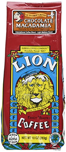 Lion Coffee Chocolate Macadamia Nut Flavored Coffee (Ground, Light Medium Roast, International Blend, 10oz Bag)