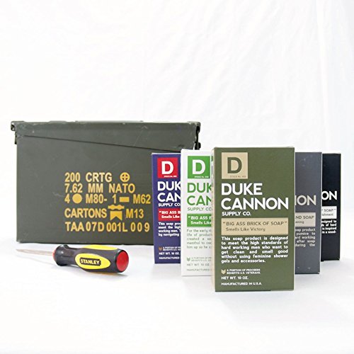 -. Feature : You will Receive (1) Ammo Can Gift Set - Limited Edition U.S. Military Field Box Gift Pack / Includes 5 Big Ass Bricks of Soap: Victory, Accomplishment, Productivity, Navel Supremacy & Heavy Duty Hand Soap / Authentic Military Ammo Field Box - reusable and watertight. / Set includes a Stanley Screwdriver / Made in U.S.A