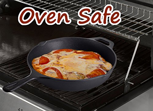 WE MAKE YOUR MEALS TASTIER - Our Cast Iron Skillets are designed to heat evenly and steadily. Heat retention properties ensure that your food is perfectly cooked and it stays warm until served. Your guests won't be able to resist your mouth watering food. Our cast iron pans feature a pre-seasoned cooking surface to help prevent sticking, and oversized handles for easy and secure lifting. Happy Cooking!