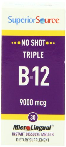 -. Binding : Health and Beauty -. Brand : Superior Source -. EAN : 0076635910205 -. Feature : Supports bone and dental health and promotes healthy muscle tone / As a dietary supplement, dissolve one micro lingual tablet under the tongue daily / May also be swallowed as you would a regular tablet -. IsAdultProduct : 0 -. Label : Superior Source -. Manufacturer : Superior Source -. MPN : B003AVJSY0 -. NumberOfItems : 1 -. PackageQuantity : 1 -. PartNumber : B003AVJSY0 -. ProductGroup : Health and Beauty -. ProductTypeName : HEALTH_PERSONAL_CARE -. PublicationDate : 2013-03-30 -. Publisher : Superior Source -. ReleaseDate : 2015-06-22 -. Size : 30 -. Studio : Superior Source -. Title : Superior Source No Shot Triple B12 Multivitamins, 9000 mcg, 30 Count -. UPC : 076635910205