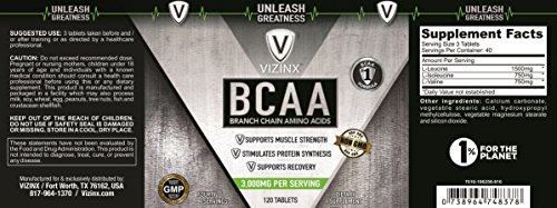 ***** SUPER VALUE SALE***** HIGH POTENCY TABLETS - Vizinx BCAA tablets provide 1000 mg per serving that is three times more than leading competitors that offer encapsulated items. We are certain that you will find this high quality product is another great way to satisfy your nutritional needs at an exceptional price.