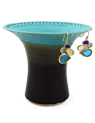-. Feature : A tidy little handcrafted jar to hold your favorite go-to earrings and accessories! / 48 holes hold multiple pairs of earrings, while the interior is ideal for brushes, bracelets, or even fresh flowers in water / Crafted on the potter's wheel, glazed by hand, and fired to a strong, permanent finish / Made by hand in the USA / Measures approx. 4.5 inches tall x 5 inches wide