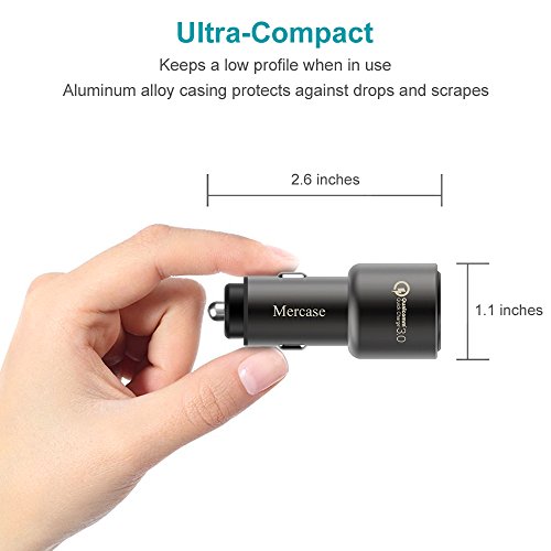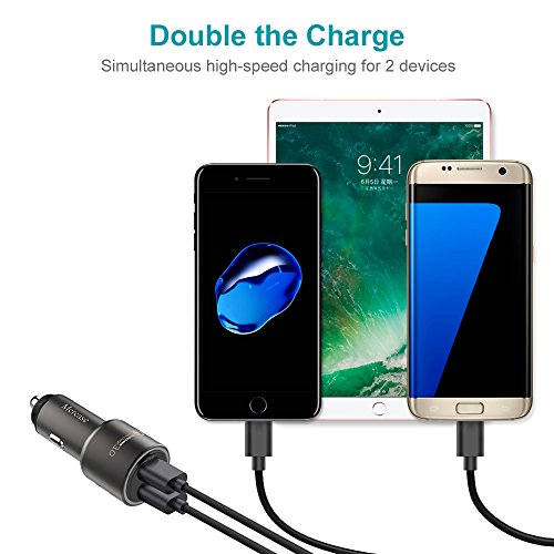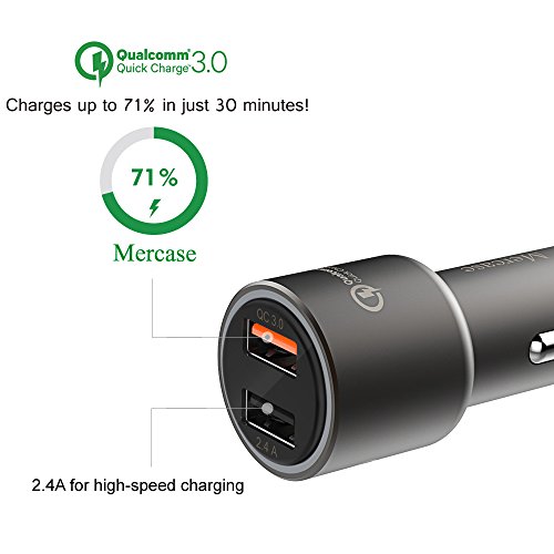 Mercase Fast Car Charger QC 3.0 Quick Charge Dual USB Car Charger Adapter for Samsung Galaxy S8/S7/S6/Edge,iPhone X/8/7/6s/Plus,Note 8 4,LG G6 G5 V10 V20,HTC,Nexus 5X 6P,Pixel,iPad Pro Portabl (Space Grey)