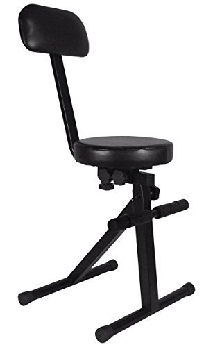 -. Feature : Rockville RDS40 DJ Chair Portable DJ/Guitar/Drum/Keyboard Padded Throne/Chair. Sturdy steel lightweight construction. / 5 adjustable levels from 21\"-30.75\" high. Sit back at a comfortable height. Reduces fatigue and stress on your back and legs. / Stay comfortable without looking like you are sitting down on the job. Lean on it while mixing. / Hides behind your rig in comfort. Holds up to 300lbs. 12" circular foam padded seat. Removable back rest. / Dimensions (exterior): 18" x 39" - 47.5 x 17". Weight: 12 lbs. Shipping dimensions (exterior): 18"W x 21"H x 7"D. Shipping weight: 13 lbs.
