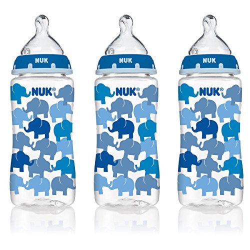 NUK 14074 Elephants Baby Bottle with Perfect Fit Nipple, Medium Flow, 10 Ounces, 3 Pack