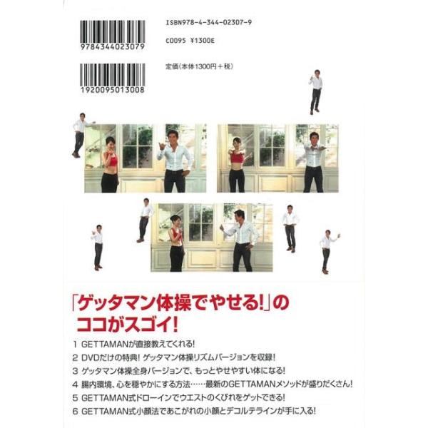 【商品基本情報】 商品名称:ゲッタマン体操でやせる!DVD付 著者/出版社:GETTAMAN/GETTAMAN 初版発行日:2013/01/10 サイズ:A5判 ページ数:63 ISBN/JAN:9784344023079/4528189329980
