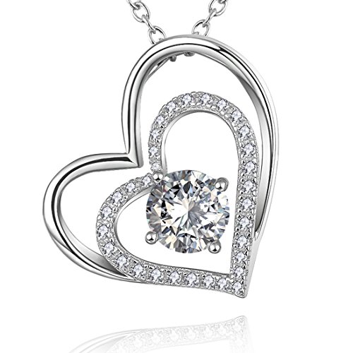 -. Feature : DAZZLING 2 HEART SHAPED NECKLACE: If you are looking for the ultimate holiday season gift for a beloved one, then we got you covered. Get now this beautiful 2 heart shaped necklace and make everyone stare in awe. / SUPERIOR QUALITY 1 CARAT SIMULATED DIAMOND: Our marvellous heart necklace has a large 1 carat cubic zirconia in the middle. You may rest assured that it will sparkle for the many years to come! Besides the center 1 carat, 31 more little brilliants adorn the inner heart as well. / ADJUSTABLE STERLING SILVER ROPE CHAIN: Both the heart pendant and the 18″ rope chain, are made from high quality white gold plated 925 sterling silver. The adjustable chain and sP.R.Ing ring clasp will allow a perfect fit! No more worries about losing the necklace thanks to its secure sP.R.Ing ring clasp. / PREMIUM GIFT IDEA HEART NECKLACE: Now with the holiday season approaching, we have the finest jewelry proposal for you and your wife! This sterling silver heart pendant is great for women and girls of all ages with unique style and sparkly hearts! Makes a stylish Valentine's gift, ideal for birthdays and anniversaries as well! / GET THIS HEART PENDANT RISK FREE: Since your satisfaction is our top P.R.Iority, this product is backed by our 30-day money back guarantee policy, just in case you don't simply love it! We are pretty confident that this heart pendant will become your number one choice every time you go out!