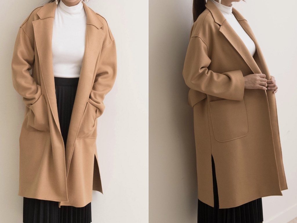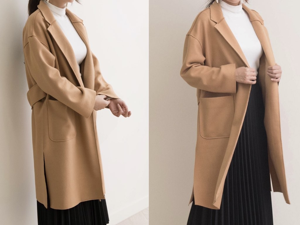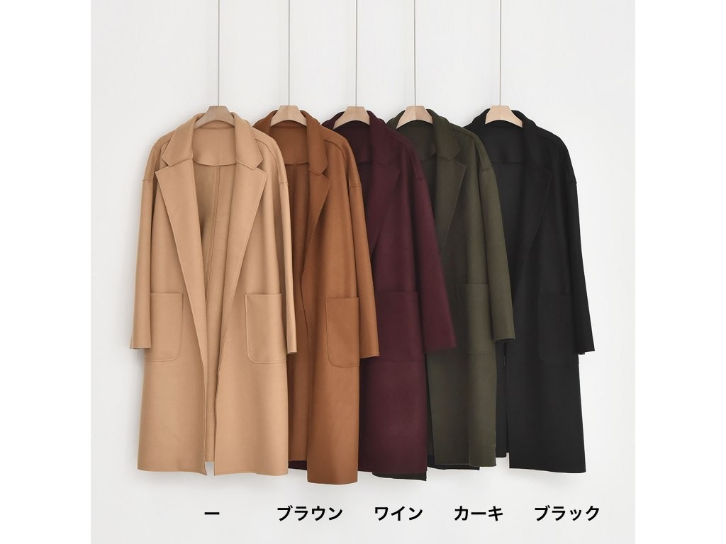 5色展開のロングコートです。さらりと着流せる長め丈です。これ一枚で旬な着こなしが実現しますね。商品は、とても丁寧なつくりとなっています。1.基本情報色:4色展開(ブラウン/ワイン/カーキ/ブラック)サイズ:Free素材:ポリエステル52%、アクリル48%製造国:Korea2.サイズ情報肩幅:53cm身幅(胸断面):60cm 腕の長さ:48cm 着丈(前):99cm (サイズは計る方法に応じて±2〜3cmの誤差があります。ご了承お願い致します)モデル着用サイズ:F※着用モデル(163cm、体重47kg、足のサイズ24.5cm)3.その他の情報厚み:中間透け感:なし伸縮性:なし裏地:なし洗濯方法:ドライ(クリーニング)[注意事項]お取り寄せ商品は、海外より仕入れるため納品まで約10日前後いただきます。また店舗でも販売しており、在庫切れになる場合もございます。ご了承お願い致します。
