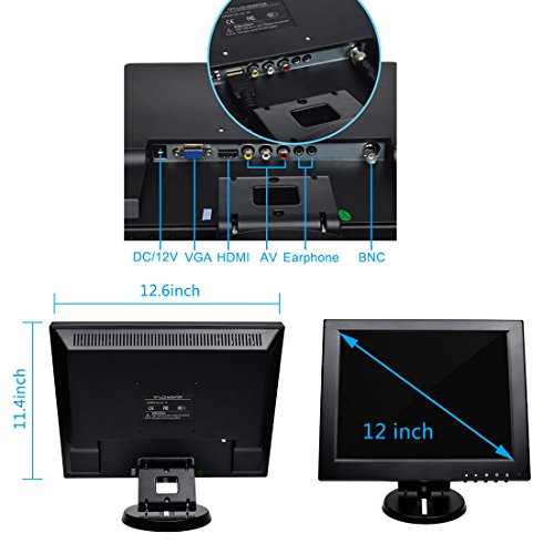 - Visual Enjoyment: The stunning 12" LCD display screen with 800*600 resolution delivers excellent detail, making it perfect used as CCTV monitor, PC monitor or indoor monitor. What's more, you can use the screen as mini size TV screen, photo scanner or video display.It support image fluctuation reversal control.