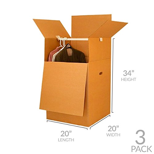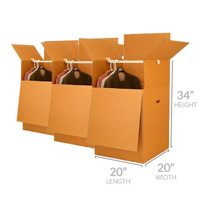 Bundle of 3 Shorty Wardrobe Moving Boxes: 20"x20"x34" + with 3 bars