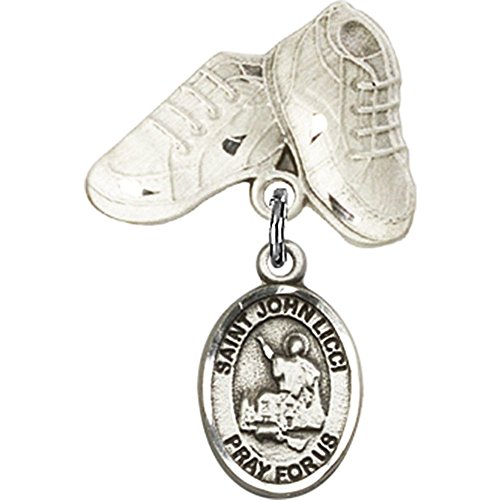 -. Title : Sterling Silver Baby Badge with St. John Licci Charm and Baby Boots Pin 1 X 5/8 inches