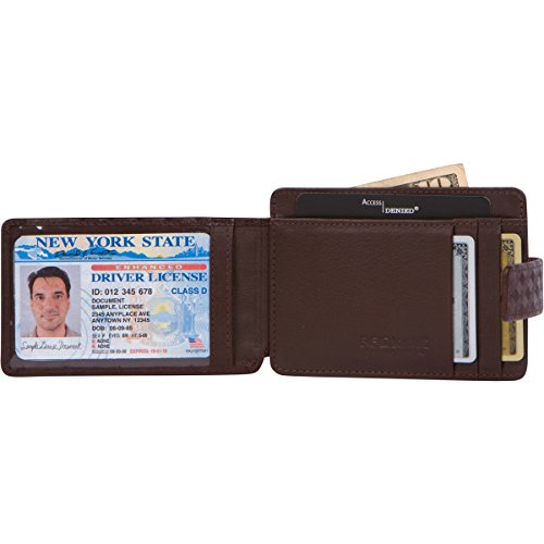 -. Binding : Apparel -. Brand : Access Denied -. Department : mens -. Feature : RFID Blocking Protection, Slim Leather front pocket wallet / Ultra slim design, 9 Credit Card Slots, 1 ID Window, 2 Pocket, and 1 Currency Pouch / Non-RFID Blocking Flip window for easy access to Security pass, Badge, or Fob / Access Denied RFID Blocking technology meets FIPS-201 Security Standards / Less than an Inch thick. Dimensions: L 4.5'' x H 3.25" x W .75" -. ProductGroup : Apparel -. ProductTypeName : ACCESSORY -. Size : One Size -. Title : Access Denied RFID Front Pocket Wallet Slim Leather with Flip IT Badge ID