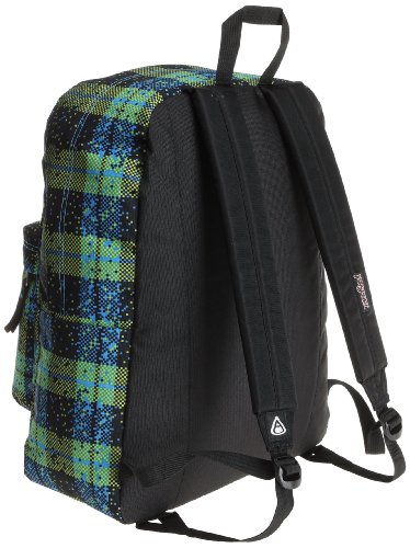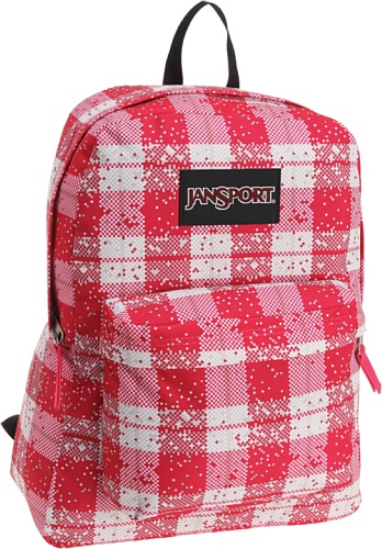 -. Feature : Iconic JanSport SuperBreak with exclusive P.R.Ints / Straight-cut, padded shoulder straps / One large main compartment / Front utility pocket with organizer keeps essentials handy / 23 padded back panel for cushioning comfort