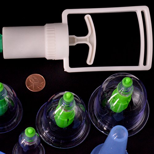 Cupping Set - Full Body Detox - ULTRA VACUUM CUPS (5) with Pump + Silicone Cups [4-Pack - Blue] - for Skin Therapy / Anti Cellulite