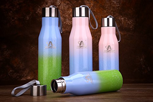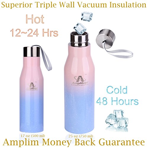 Amplim Triple Wall Vacuum Insulated Stainless Steel Sports Water Bottle. 17 oz, 25 oz Blue Pink