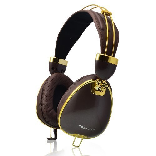 -. Feature : MIC and Volume Control / Standard 3.5mm Jack / Foldable with PU Leather Strap and Soft ear cushions / Deep Bass with Clear Acoustic Sounds / Brown with Gold Trim