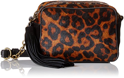 -. Feature : • 100% genuine leather • polyester lining • 7 w x 5 h x 3 d • 21" strap• adjustable strap• zip closure• round stud detail• tassel• hair calf• main compartment with slip pocket