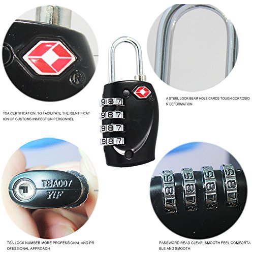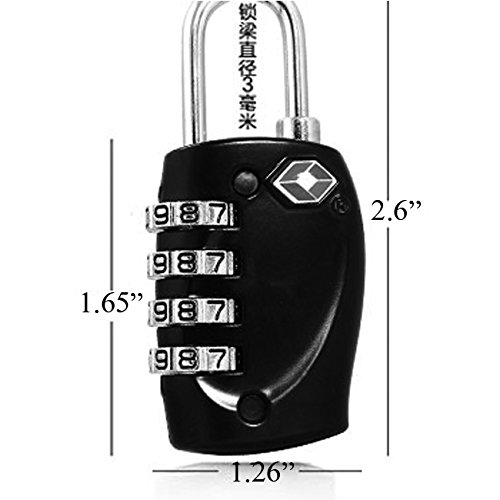 -. Feature : Material: Zinc alloy. Sturdy, durable and dependable to provide a lifetime of security and peace of mind. Dimensions: 2.5x1.2x0.6inches. / EASY to READ 4 Dial Combination can be set and rest to any combination of your choosing for added security. Large dials with easily visible numbers make it easy to line up the numbers correctly, even for the hard of seeing. / These combination TSA locks are 100% TSA approved. / Easily spot your lage at the baggage claim area thanks to the locks vibrant color. / Not only for securing your trip, but smaller lockers & cabinets, cases & bags, chains, hasps and more.
