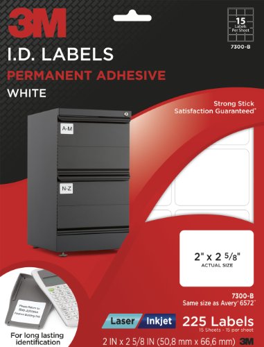 3M(TM) Identification Labels, 2 x 2 5/8 Inches, White, 15/sheet, 15 sheets/pk (7300-B)