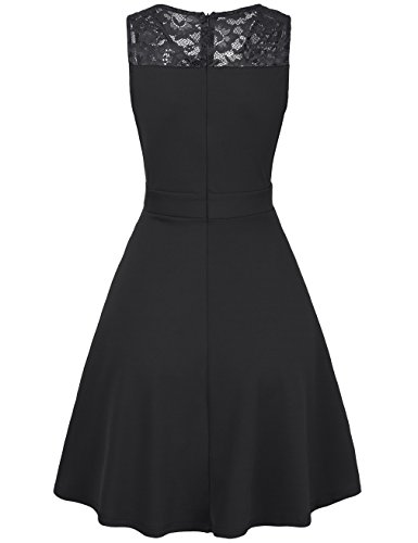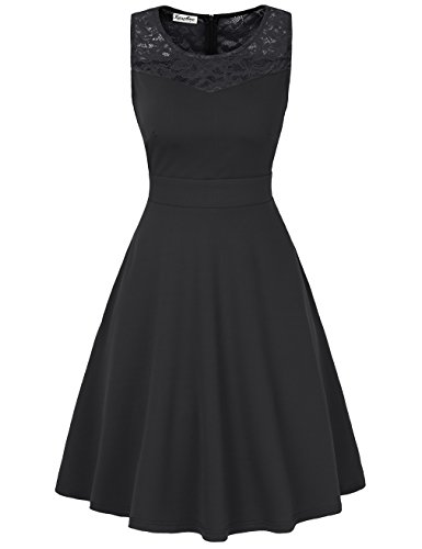 KASCLINO Floral Lace Dress, Juniors Girls Evening Dresses Sleeveless Lace Floral Vintage Retro Wedding Dress Black S