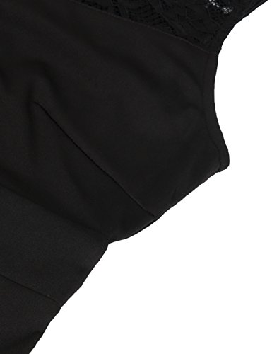 KASCLINO Wedding Guest Dress, Career Women Cocktail Dress Vintage Floral Lace Tea Party Dress with Pocket Black L