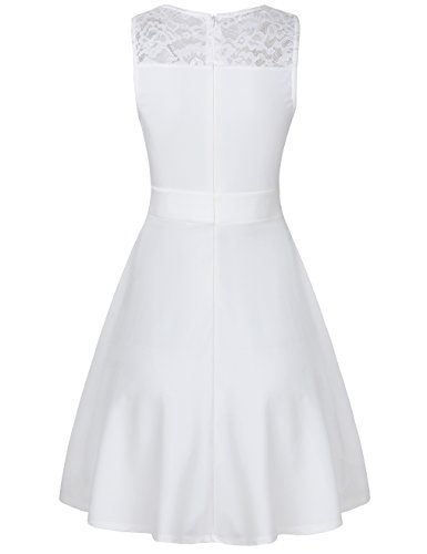 KASCLINO Cocktail Dress, Women's Sleeveless Lace Party Cocktail A Line Mini Flared Tank Dress White S