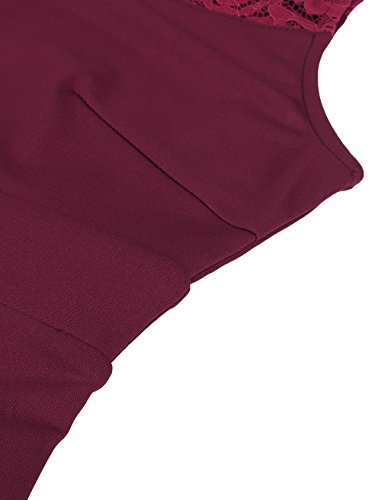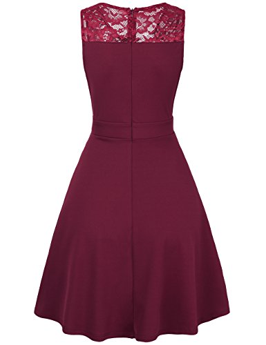 KASCLINO Swing Dress, Office Ladies Weekday Apparel Modern Chic Elegant Floral Lace Little Cocktail Dress With Lace Floral Round Neck Wine Red S