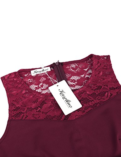 KASCLINO Tank Dress, Women's Sleeveless Lace Floral Fromal Business Party Round Neck Vintage Retro Cocktail Swing Dress Wine Red XXL