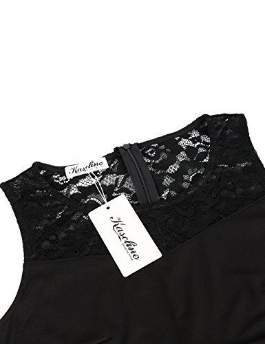 KASCLINO Formal Party Dress, Little Black Dresses Hollow Out Lace Wedding Party A Line Midi Tank Dress with Pocket Black XL