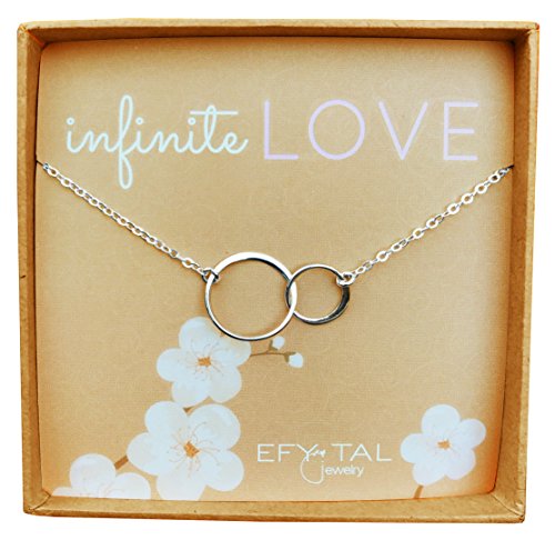 -. Feature : MATERIALS: 925 Sterling Silver. Great quality to last a lifetime. This will not turn your skin green or red or itchy :) it's the real deal, using sterling silver from the most reputable silver supplier in the country. The chain is dainty but strong. It will not break on you. Efy Tal Jewelry (the manufacturer) will always replace it for you if needed. / THE MEANING: These timeless sterling silver interlocking double circles represent the bond that you share for now and for infinity and eternity with that special person. A reminder of your endless love around her neck. Perfect for that special gift from husband to wife, boyfriend to girlfriend, mother to daughter, and best friends. For birthday, anniversary, valentines day or just because! / MANUFACTURER GUARANTEE: 2 year manufacturer warranty on chain. Love these necklaces or your money back! / HANDCRAFTED IN THE USA: in the Efy Tal Jewelry studio in Glen Rock New Jersey. This is the kind of quality piece you will feel proud to give as a gift. Comes beautifully GIFT WRAPPED and ready for gift giving. / CHAIN LENGTH: 19" / 48cm - This length looks great on just about everyone so you can't go wrong with this! Don't worry about this being too small :) If you need an adjustment in the length, Efy Tal Jewelry (manufacturer) will do that for you at any time for free. Circles dimensions (together) are: 15mm x 25mm or 3/4" x 1 1/4" : Big enough to be significant but super delicate and understated.