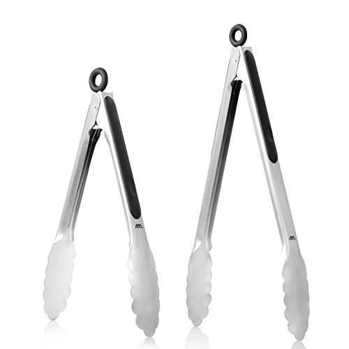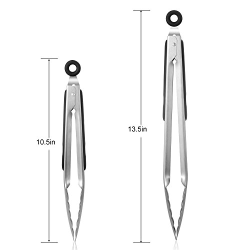 - 【2 Set Multifunction Tongs】Every package includes 9" and 12" cooking tongs, suitable for small size food and heavy ones. Two set kitchen tongs can be used at indoor and outdoor occasions.