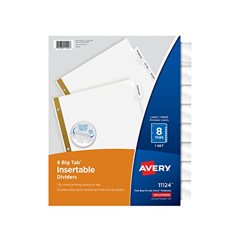 Avery Big Tab Insertable Dividers, 8 Clear Tabs, 1 Set (11124)