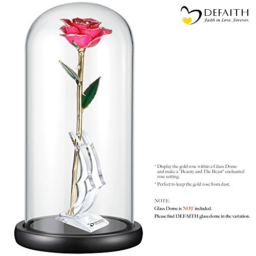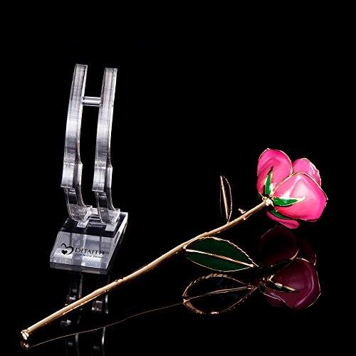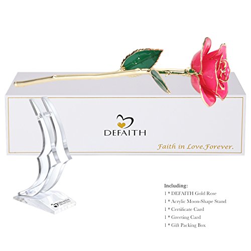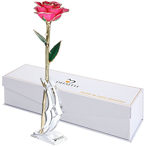 Pink Gold Rose, DEFAITH 24K Gold Trimmed Long Stem Real Rose with Moon-shape Rose Stand. Last a Lifetime. Best Anniversary Gift.