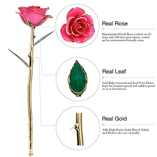 She (or he) will love the unique present of an everlasting 24k gold rose for an Anniversary Birthday Valentine Day or for any other occasion.