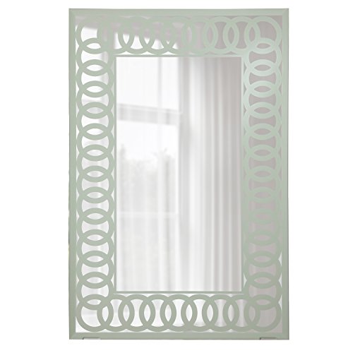 Attractive metallic sage green circular patterned border is layered within the glass mirror.