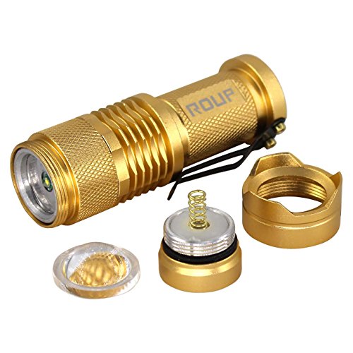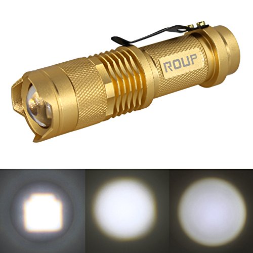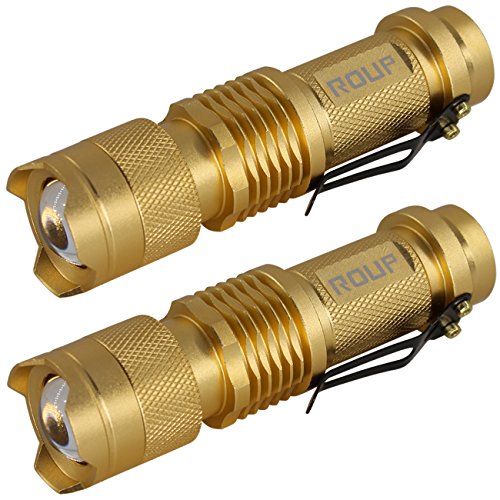 ROUP 2 Pack White Light Zoomable Mini LED Flashlight, 300 Lumens Handheld Tactical Torch, Powered by 1x AA Battery, 3 Mode, Ideal for Outdoors, Home, Emergency, or Gift-Giving (Golden Shell)