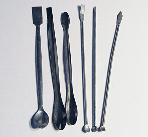 Stainless Steel Lab Spatula, Medical Pharmacy Mini Micro Spoon Scoop, 6 Piece Set, 8" Length