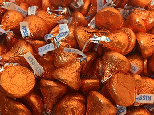 -. Feature : Hershey's Kisses, Milk Chocolate in Orange Foil (Pack of 2 Pound) / This delicious, wrapped bulk candy is perfect for weddings, candy buffets, graduation parties, and other large events / Individually wrapped in orange colored foil. / Kosher and gluten-free milk chocolate candy. / Includes 1 bag of KISSES Milk Chocolates in orange foils (2 Pounds bag)
