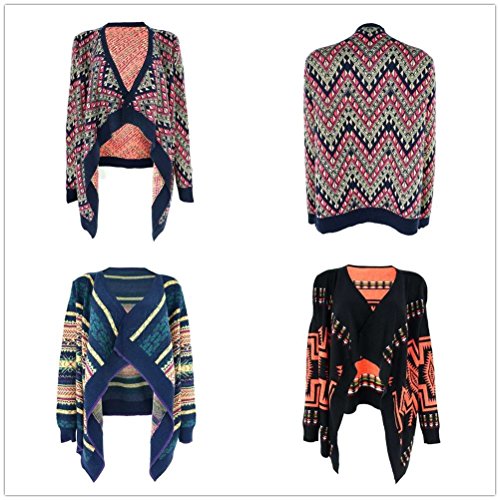-. Feature : Material: 65% Acrylic, 35% Wool / Size: ONE-SIZE Fit US 8 / UK 12 Bust: 37 inches / 94 cm, Length: 20 inches / 52 cm / Wide, ribbed lapels, dropped shoulders. Waterfall Open front. / Tribal aztec and geometric pattern design. Multifunctional: cardigan, scarf, blanket, etc / Hand wash. Do not bleach, iron or tumble dry