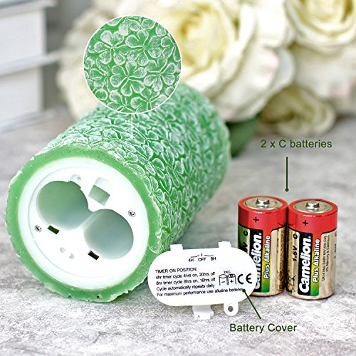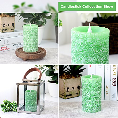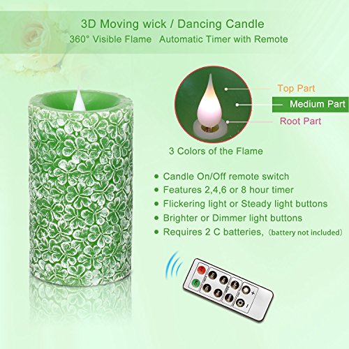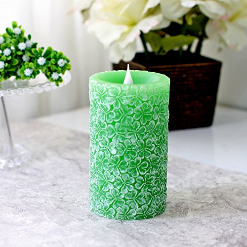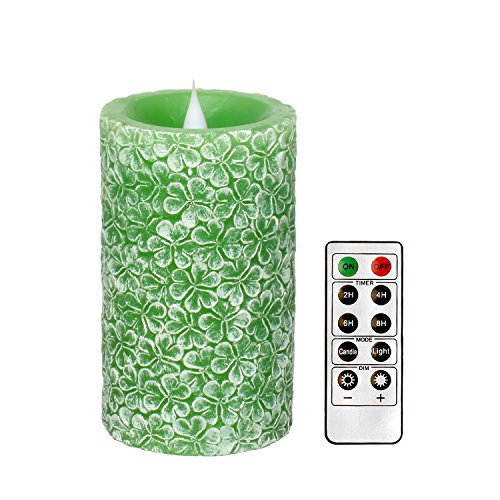 Moving Wick Led Candle with Remote Control.Green Clover,3.25x5.5 inches,by GiveU